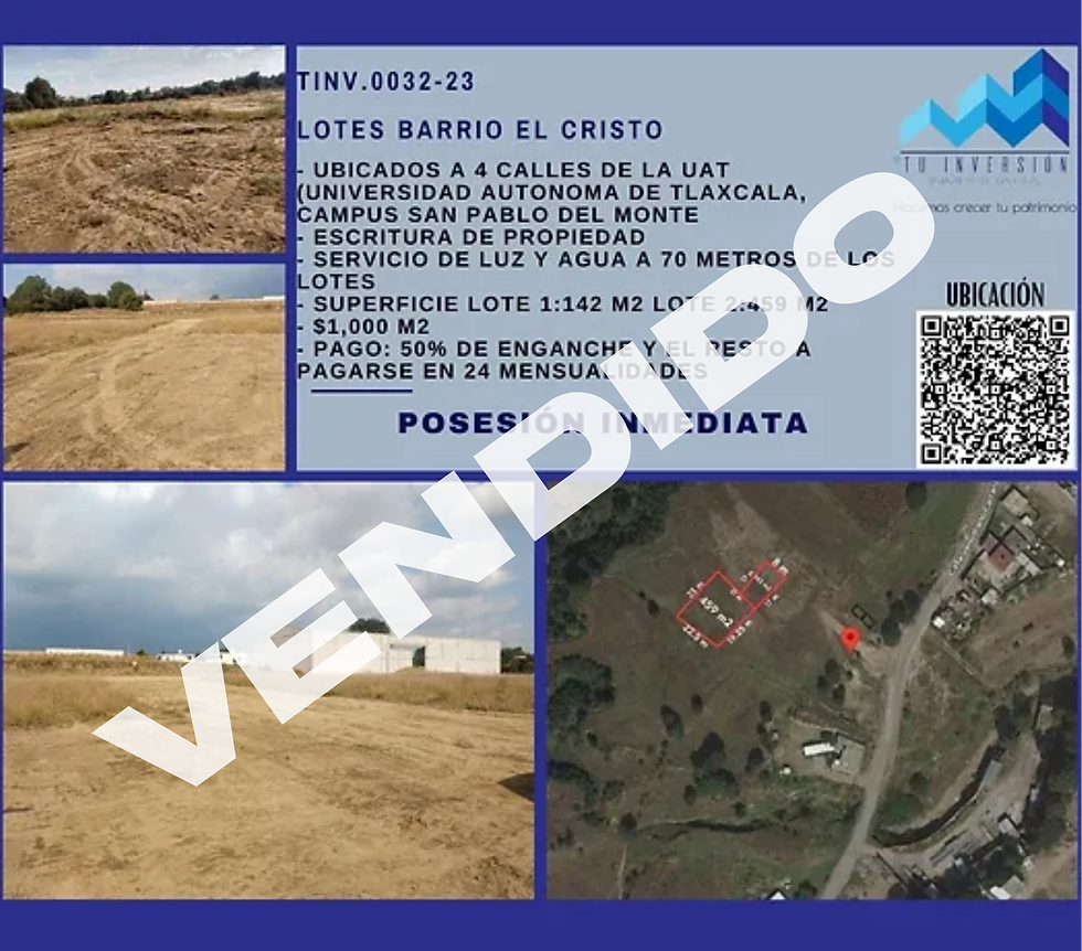 Se ubica en el barrio del cristo, a cuatro calles de UATx, servicios de agua y luz a 100 metros de los lotes.